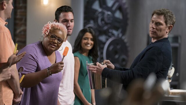 The remaining finalists team up to create food podcasts about colorful snacks; Bobby Flay, Giada De Laurentiis and guest judge Richard Blais listen and decide whose voices paint the prettiest picture.