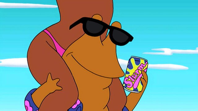 Fry tours a soft-drink factory and is disgusted when he discovers what Slurm's secret ingredient is. Voices of Billy West, Katey Sagal and John Di Maggio.