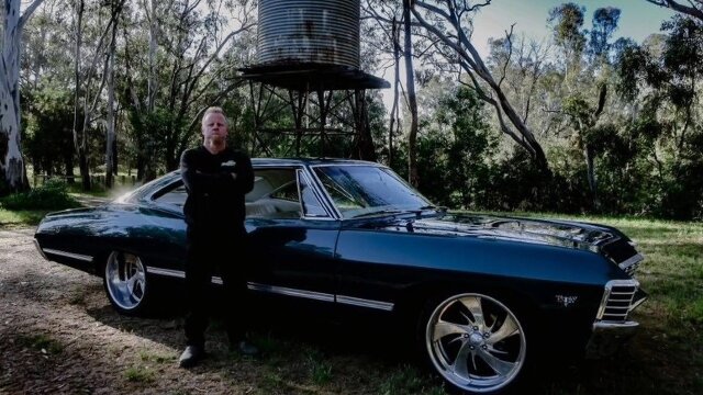 Vehicles include a '49 Chevy 3100, a '67 Impala and a '68 International.