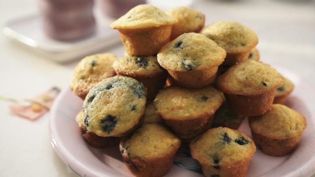 Molly Yeh makes a slew of kid-friendly dishes that everyone will adore; she whips up grilled bacon, egg and cheese in a basket, a cozy chicken noodle hot dish and a breakfast combo: blueberry muffin smoothies with mini blueberry muffin garnishes.