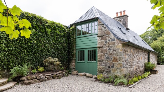 On a Scottish country estate architect Lain and his wife Jenny build an enormous new black, square building inside a beautiful old walled garden, connecting it right through the high garden wall into a dilapidated gardeners' bothy on the other side.