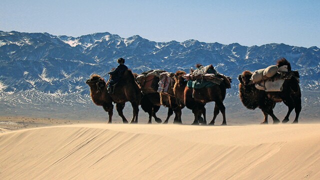 Altagan and Dsolbo must travel across the desert of Mongolia to find precious green pastures to feed their entire camel herd during the winter.