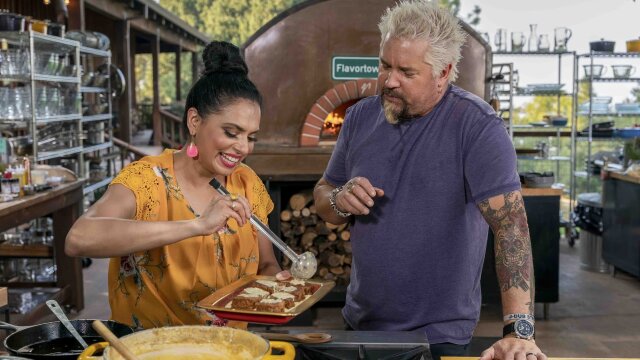 Guy Fieri asks his chef friends to make their childhood favorites; Maneet Chauhan cooks goat lukhmi; Hunter re-creates his fave: chicken parm-eroni; Ming Tsai makes meatless Chinese spaghetti; Jonathan Waxman shares Joe's special.
