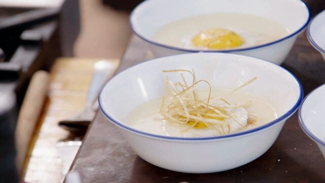 Eric Greenspan pours carrot ginger mules; Elizabeth Falkner digs a whole carrot salad; Christian Petroni makes maple sweet potatoes; Justin Warner wants yucca fries.