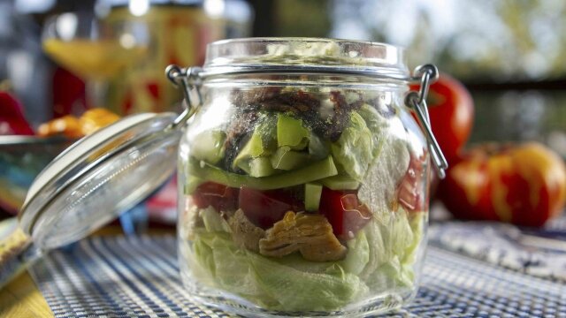 Guy Fieri and his friends are planning a picnic; Domenica Catelli shakes up a Tennessee Tart cocktail; Gerry Garvin serves lobster cocktail; Aaron May builds a cobb salad in a Jar; Christian Petroni gets sweet on sugar snap peas with brown butter.