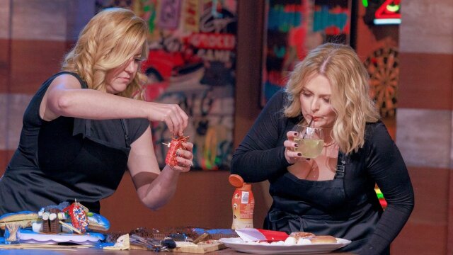 Olympic medalists Tara Lipinksi and Johnny Weir aim to add a shiny frying pan to their gold collection as they face comedians Natasha Leggero and Moshe Kasher; comic actors Lauren Ash and Leslie Seiler face a series of food challenges.