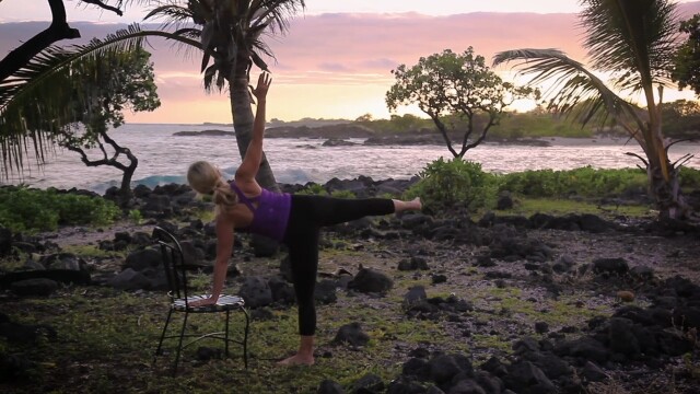 Seated and standing postures to open the hips and stretch the hamstrings; balance postures to tone the legs and glutes.