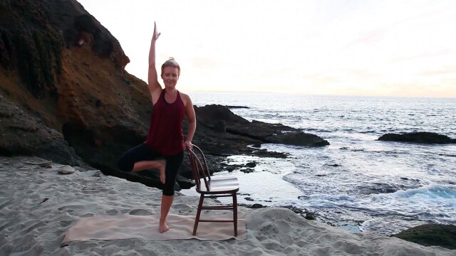 A modified yoga practice includes dynamic seated stretches and a standing sequence to build strength, balance and focus.