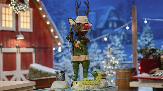 The six remaining teams face off as Jeff challenges them to envision a hobby for Santa's reindeer to enjoy when they aren't pulling the sleigh; Shinmin Li and Aarti Sequeira judge the designs before flying one team home.