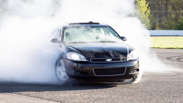 The guys cram an entire second drivetrain into the rear of a Chevy Impala, then put their creation through its paces on a drag strip in New Jersey.