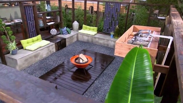 An earthy young couple is ready to push their party space into the back yard; their existing deck becomes a posh dining spot complete with an exotic wood prep table that boasts a working sink and stainless chop area.