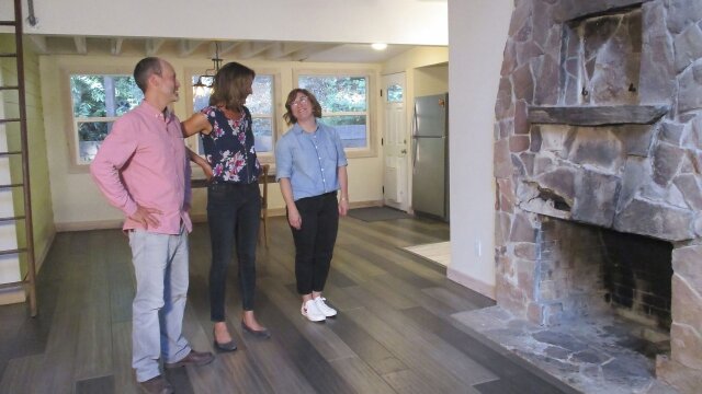 A buyer is looking to buy a weekend place in Guerneville, Calif.; she has her heart set on a vintage cabin close to town but her touring partner thinks she needs a newer, lower-maintenance place.