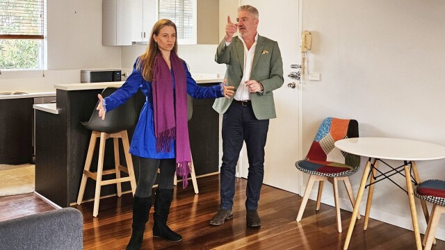 California became too stale and expensive, so a worldly woman looks to fulfill her dream of moving to Melbourne, Australia; she wants a place big enough to accommodate guests and her beloved cat; her budget may not meet her high expectations.