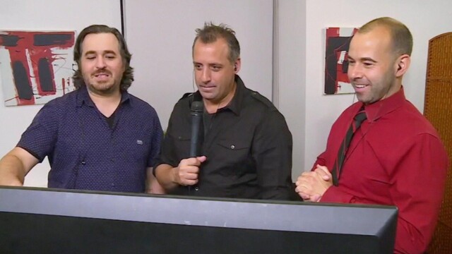 The guys are hit with some bad reception while working behind a desk; the guys head to the park where they ask strangers for advice on their questionable life choice; tonight's big loser is tasked with taking photos of a water aerobics class.