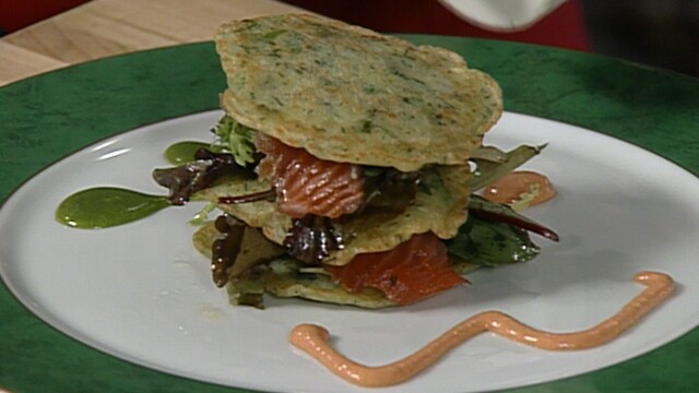 Monique Barbeau prepares gravlax cured with tequila and lime, and dill pancakes.