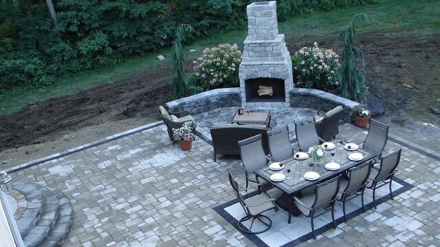 Dean and Derek create an Italian Family Dining Hall in a backyard that includes a giant 800 square foot patio, fireplace, kitchen unit with grill, and a unique wood fired pizza oven.