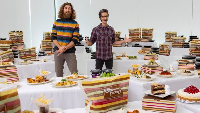 Rhett and Link go behind the scenes at The Cheesecake Factory to find out how its massive menu got so big and how it manages to prepare everything from scratch; the guys also try their hand at cheesecake decoration.