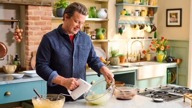 Jamie shows the traybake method that takes minutes to throw together and delivers maximum flavor; he makes roast veg and Camembert fondue, followed by a fish supper and his poached chicken; Jamie then whizzes up a spicy salsa and chocolate tiramisu.