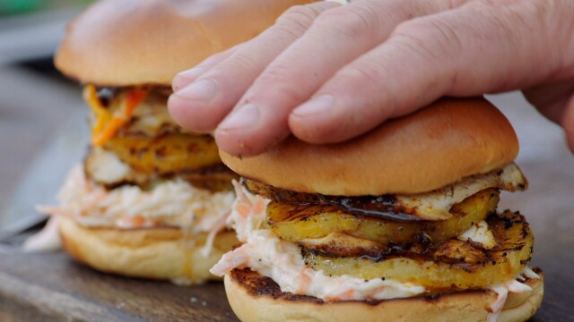 Jamie spices up a barbecue chicken burger, shows how to make delicious homemade hummus, and whips up a Rocky road with the kids as a treat that uses lots of store cupboard ingredients.