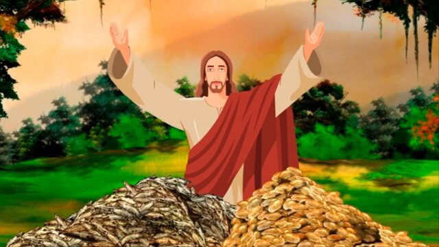 The story of Jesus feeding the poor with bread and fish.