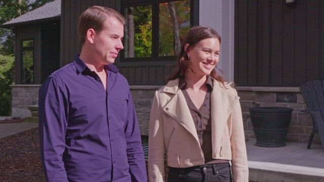 Chelsea and Spencer's are looking to purchase lakefront property to enjoy with friends, family and their dog, Henry; the first property on their search is a new build that sits on 5 acres, with an amazing chef's kitchen and an oversized primary bedroom with a vaulted ceiling; next up is a more rustic property a Scandinavian style log home; this unique lake house has gorgeous, oversized raw timber beams and a classic stone fireplace. It also comes with a private beach.