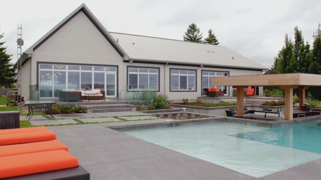 James, Cristina and their children pack up and leave city life behind; they find a modern home with resort-inspired outdoor space, including a pool with a swim-up bar, as well as an elegant heritage home with a cobblestone driveway.