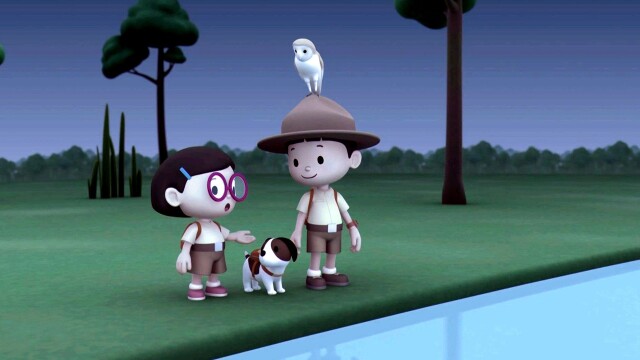 Una lechuza asusta a Leo en el jardín. Después, los muchachos parten hacia las praderas para encontrar un lugar de caza más apropiado que un jardín para una lechuza.