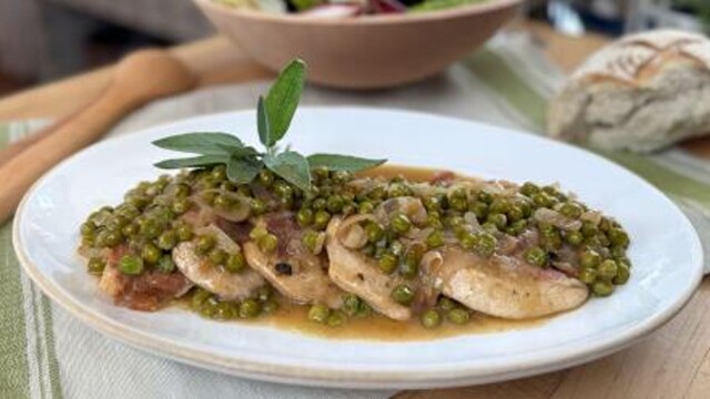 Manilla clams triestina; warm escarole salad with cannellini beans and mackerel; chicken scaloppine with prosciutto and peas.