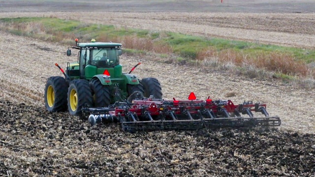 At the end of another growing season, Kevin and Brooks prepare for next year; after harvesting their fields, the farmers tile for water management, working the dirt to prepare it for winter.