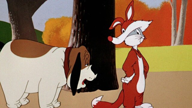 While a pack of hunting dogs are chasing a fox through the countryside, Bugs manages to trick a not-too-bright dog with his fox costume.