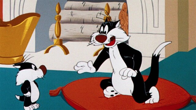 Local cat gossip says that Sylvester is no longer a great mouse catcher; to prove them wrong Sylvester takes his son mouse-catching.