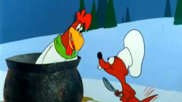 Foghorn, Barnyard Dawg and the weasel go after each other in a winter wonderland.