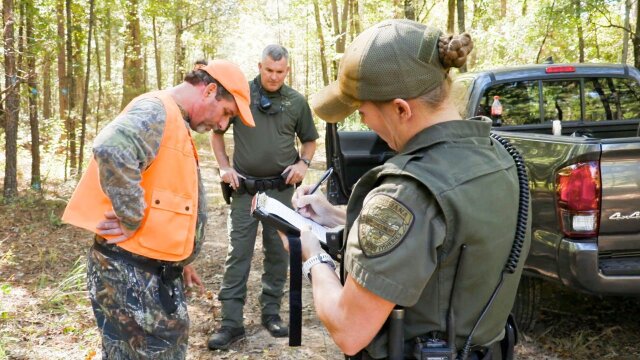 Wildlife agents question a hunter with something to hide; a group of youths shooting ducks from a moving boat is caught in the act; frightened hunters accuse a landowner of serial harassment.