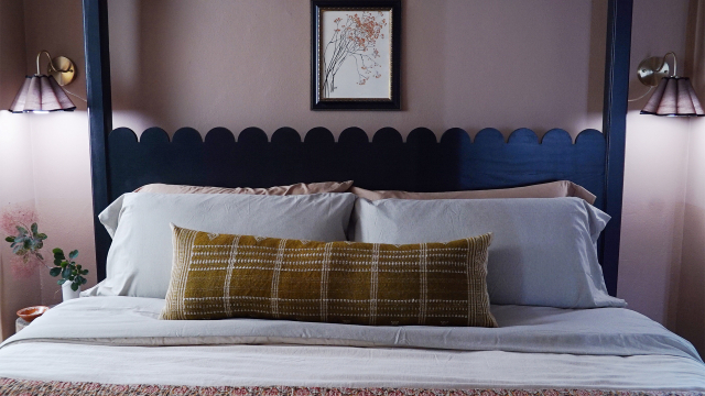Jenni Yolo elevates a bland bedroom into a terracotta haven and creates an office nook in her client's closet; designing a custom bed frame, showstopping light fixture and adding wallpaper, Jenni gives her clients a space they'll never want to leave.