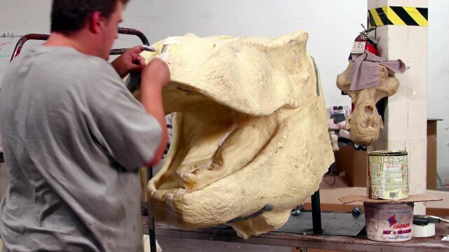 Three-headed Dino Pods for the "Discovering the Dinosaurs" attraction; Zombie Gusher; making 4,000 monsters.