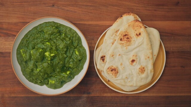 Chef Maneet Chauhan shares two more favorite Indian recipes, starting with crispy spinach and onion Pakoras; Maneet makes Saag Paneer, a vegetarian meal made from curdled paneer and a mix of bright greens.
