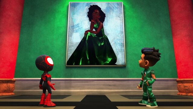 Spin and Reptil's visit to the museum is interrupted by Green Goblin's antics.
