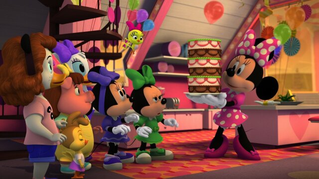 Mickey and his pals finish building Mickey's new house; Millie and Melody have a birthday sleepover at Minnie and Daisy's vacation house.