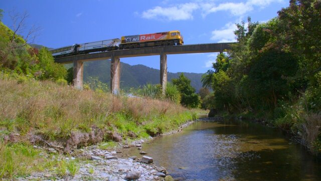 Travelling up the coast of New Zealand in style aboard the Coastal Pacific, a train that embodies the nation's spirit of grit and determination; for two years, this ride was shut down due to an earthquake in 2016.