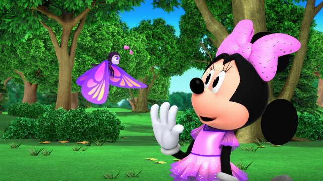 Minnie tries to practice a dance for the talent show, but a cute butterfly keeps messing up her act.