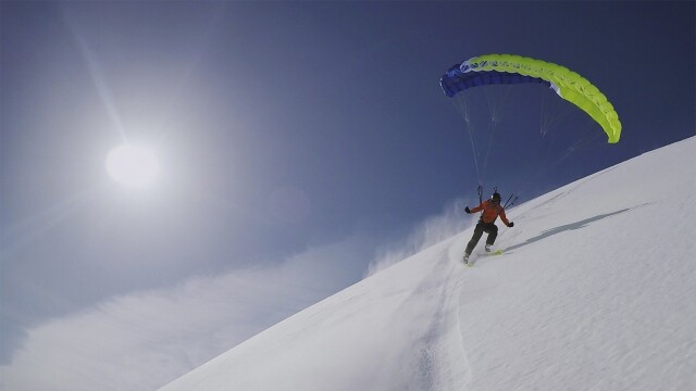 The Alaskan mountains in spring are mind blowing; Jokke and his friends board a helicopter to go speed flying; it may look peaceful, but it's very dangerous.