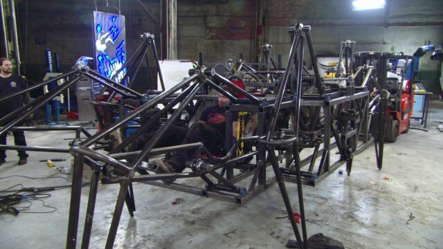 Dave and Jamie use their own teams to design dueling bikes that can run over land and ice.