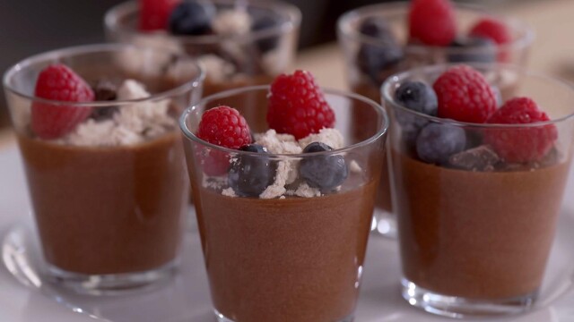 Stewed leeks with prunes and tomato; olive oil poached fish; feta and herbs preserved in olive oil; chocolate olive oil mousse.