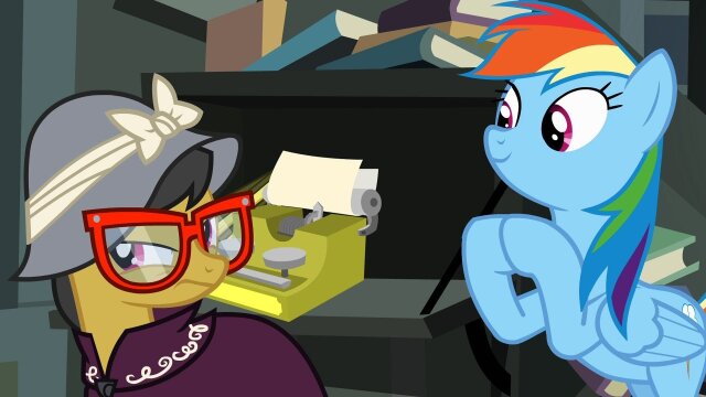 Rainbow Dash and friends offer to help their favorite author finish her latest book.