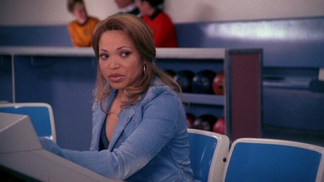 Michael bowls against his archenemy Stu Tyler (Larry Miller); Trekkies at the bowling alley believe Claire is a Romulan queen.