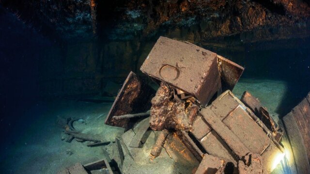 Jeremy Wade explores a shipwreck that may contain stolen Nazi treasure, the priceless lost furnishings of the 18th century Amber Room; astonishing footage captures the exact moment when freight ship MV Arvin split in two and sank in the Black Sea.