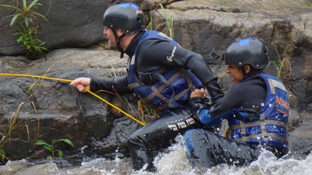 Contestants have to work together during a tough endurance test in the Sabie River and playing rugby wearing VR glasses.