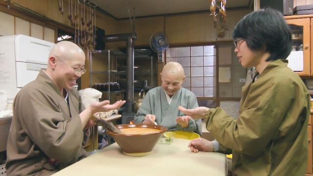 The nuns prepare yuzu pepper and yuzu miso on the day of Taisetsu and use pumpkin to make soup, noodles and flan on the day of Toji.