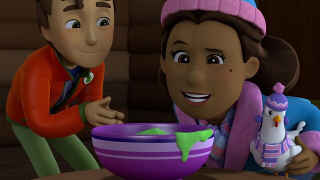 The PAW Patrol works to free a bat family after a rock slide traps them inside their cave; snowboarders on Jake's Mountain become stuck on a broken chairlift while a monster is on the loose.