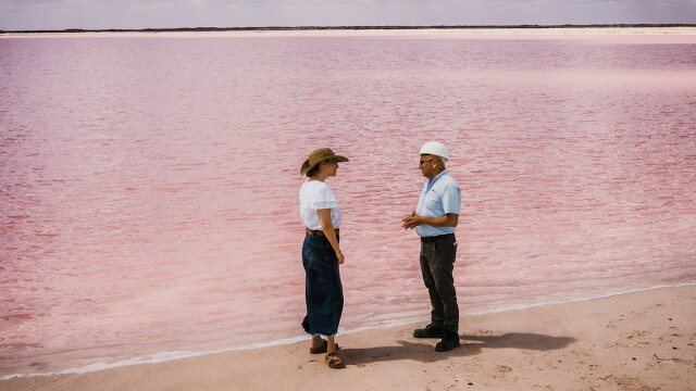 An ingredient Pati constantly uses is salt and Yucatán has one of the most unique salts. The Las Coloradas salt, which means blush red, gets its distinctive color from red algae. Felipe Perez takes Pati to the pink lakes where the salt is produced.